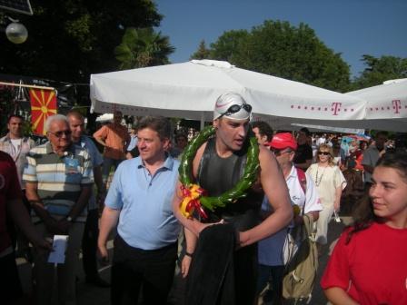Déjà vu každého léta je tu znovu. Každý rok se podivujeme, jak může fenomenální Petar Stojčev vyhrát tři nejtěžší plavecké maratóny extrémních vzdáleností během pouhých dvou týdnů, spojených s přelety mezi kontinenty a často i s dalšími závody, kterých se Petar zúčastňuje (SP Roberval apod.). Po desátém vítězství v řadě na St. Jean (32km) a Magogu (34km) v Kanadě, o kterých jsem se zmínil minulý týden, dokázal znovu a po deváté v řadě vyhrát i v makedonském Ohridu (30km – na snímku v cíli). Druhý v závodě, nad nímž má záštitu samotný makedonský prezident, který vítěze tradičně dekoruje, doplaval Němec Alexander Studzinski a třetí Argentinec Damian Blaum. Mezi ženami byla nejrychlejší Chorvatka Karla Sitic, která zaplavala výtečně pětadvacítku na ME na Balatonu.