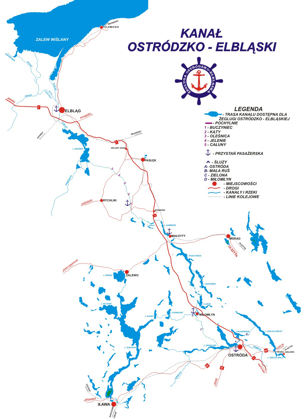 Tento plavební kanál vybudovaný před 150 lety holandským inženýrem Jakobem Georgem Steenkem původně pro přepravu dřeva a jiného nákladu, slouží dnes jako turistická atrakce a zároveň celosvětový technický unikát. Na 82 kilometrech prochází několika jezery (např. jezero Ruda Woda dlouhé cca 12 km), přírodními i umělými kanály a překonává výškový rozdíl skoro 100 m díky systému plavebních komor a výtahů, ve kterých jsou lodě přepravovány na vozech po kolejích o několik desítek výškových metrů nahoru a dolů.