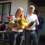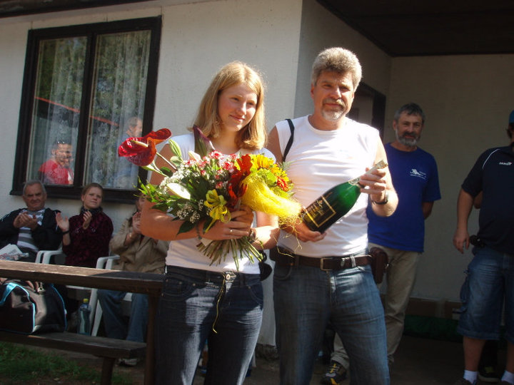 Podzimní rožeň v Mělicích, poslední závod na otevřené vodě, přivítal neuvěřitelných 160 účastníků letním počasím a vodou o teplotě 18,2°C, které daly zapomenout studenému „otužileckému“ vystoupení o týden dříve na Pastvinách. Do Mělic se vrátilo léto a rovněž z Anglie úspěšná přemožitelka Kanálu La Manche Lenka Štěrbová (na snímku Jiřího Kuřiny s otcem a koučem Michalem Štěrbou), které téměř tři stovky přítomných připravily dlouhé a zasloužené ovace včetně poklony od zástupce města Pardubice – náměstkyně primátora dr. Fraňkové a zástupců domácího klubu. Díky obrovské účasti tak do hlavního pětikilometrového závodu nastoupilo letos vůbec nejvíce závodníků hned po Mistrovství ČR na Šífrech!