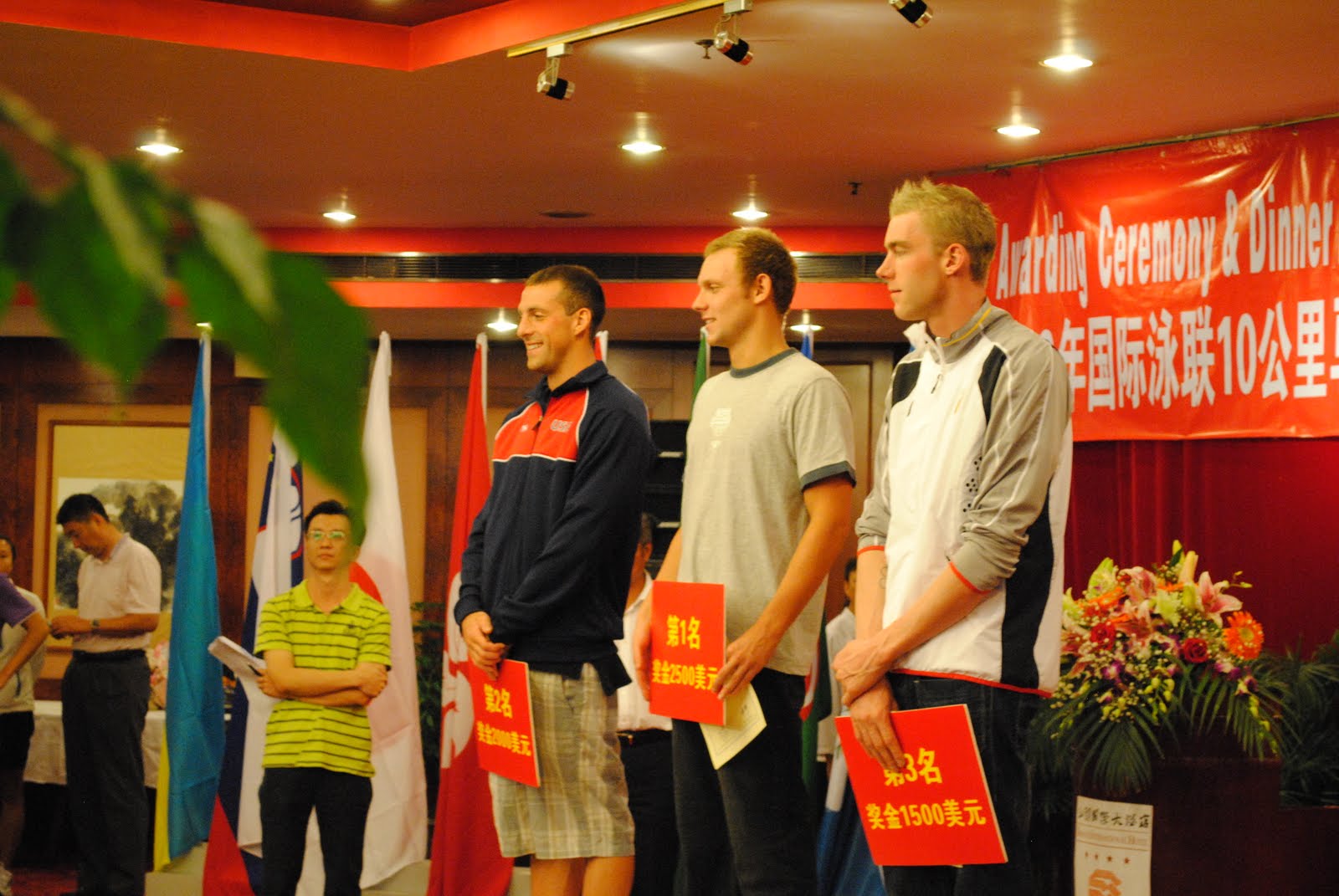 Třetí dohmátl, premiérově na světových stupních vítězů, Belgičan Brian Ryckeman (všichni tři na snímku z vyhlášení výsledků). Fran Crippen pak vybojoval třetí místo i v Hong Kongu, kde se ovšem musel sklonit před vítězným Jihoafričanem Chadem Ho, čtvrtým z Číny, a Němcem Thomasem Lurzem, vítězem z posledního Great Swim v Anglii, kde plaval i Lukáš Jachno. Vítěz ze Shantou byl v Hong Kongu diskvalifikován, stejně jako Petar Stojčev nebo Igor Čevinskyj.