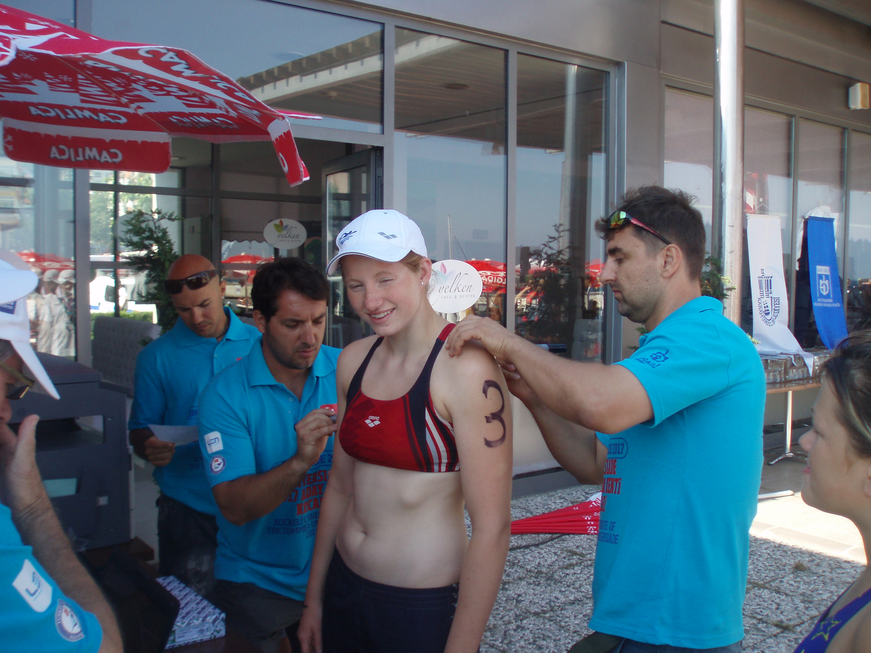 1000 Euro si do Španělska veze nejzkušenější účastnice, osmadvacetiletá Yurema Requena (1:10,46), druhá skončila Němka Svenja Zihsler a třetí „stará známá“ z Eilatu Natalia Carlos, německá plavkyně v polských barvách. Lenka Štěrbová (na třetím snímku při popisu), která se lépe cítí na delších tratích, obdobně jako v Antalyi nezachytila úvodní nástup nejrychlejších plavkyň, s průběhem závodu se ale dostávala do správného tempa a v poslední kolem už kontrolovala pozici na čele druhé skupiny. Ve sprintu od poslední bójky do cíle Eňa (1:15,37) odrazila nástup Ukrajinky Mišenkové i nejrychlejší Izraelky Amitové a stejně jako Honza Kútnik doplavala na třináctém místě celkového pořadí a osmém místě redukovaného pořadí dívek ročníků 1993-95.