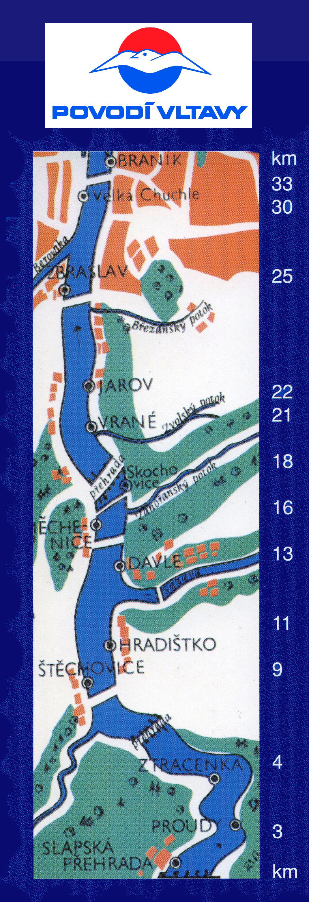 Stál jsem na Rohanském ostrově před žlutým vchodem do nouzové stavby. Na dveřích připevněný nápis Povodí Vltavy – závod Dolní Vltava – a já jsem byl nesmírně zvědavý, jak celé jednání dopadne. Ve vrátnici jsem se zeptal, kdo obhospodařuje přehrady na dolním toku Vltavy. Bylo mi sděleno, že úseková technička Svatošová. Byla to hezká blondýnka, které jsem se představil a řekl, že sháním výjimku pro proplutí komorami přehrad ve Štěchovicích a ve Vraném nad Vltavou. K mému překvapení řekla, že není nic snazšího, než napsat žádost, ve které bude datum a hodina proplutí. Žádost mám přinést k ní. Zůstal jsem na ni civět. To snad není možné! Připadalo mi, jako by tu byli na takové žádosti zvyklí a stávalo se to každodenně.