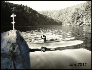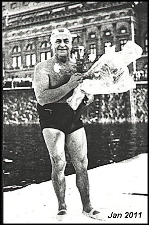 Zatímco jsem se převlékal, Bohouš nafukoval gumový člun. Voda měla rovných 13°C a já jsem si přál, aby taková zůstala celých čtrnáct dní až do mého startu. Nevím proč, ale odjakživa mě chladná voda přitahovala. Jako čtrnáctiletý jsem ve svém zahradnickém učení nechtěně vydráždil mistra k nepříčetnému běsnění u rybníka v zahradě na Pražském hradě. Rybník byl už rozmrzlý s kousky ledu na povrchu, a já jsem v něm potají prováděl svou koupel. A pan Smažil, tak se mistr jmenoval, mě náhodou objevil. Začal křičet, abych z rybníka okamžitě vylezl, že za mě ručí, a že mě to koupání může stát život. On totiž, chudák, nevěděl, že rybník navštěvuji celou zimu. Byl jsem tak trochu zlomyslný a plaval si dál, jako bych ho neslyšel. Musel si myslet, že nejsem normální, že jsem se zbláznil. A podle toho začal taky jednat. Lítal po břehu, křičel na mě, abych ihned vylezl, jinak že zavolá hasiče. Já jsem se dobře bavil, a se mnou i další, co přiběhli, když slyšeli Smažila vyvádět. Ten objevil vedle rákosí ledařskou sekyru a s úmyslem mě zastrašit mně ji hodil doprostřed rybníka. Výsledek byl ten, že já jsem šel konečně na břeh, a sekera ke dnu. Ještě několik let si dávali tenhle příběh k lepšímu zahradníci Pražského hradu. Mezi učni byl tenkrát i můj dnešní doprovodník, akademický malíř Bohumil Peroutka. Ten zase při zahradničení na Hradě tajně maloval v jednom altánu, a to tak dobře, že když se přihlásil na Akademii múzických umění, vzali ho přímo z učení, tedy bez maturity. V čase jeho studií, i později, jsme si vzájemně pomáhali. Jako student to neměl finančně lehké, a tak potřeboval tu a tam dohodit nějaké kšefty. Pražští otužilci byli totiž zváni filmovým komparsem Barrandov k natáčení různých filmů, například pohádky Malá mořská víla, Tři oříšky pro Popelku a podobně. Při každé takové příležitosti byl Bohouš propašován jako otužilec pro natáčení filmových záběrů, které se někdy dělaly i v zimě. Bohouš si tak, za pro něj tvrdých podmínek, přivydělal nějakou tu korunu.