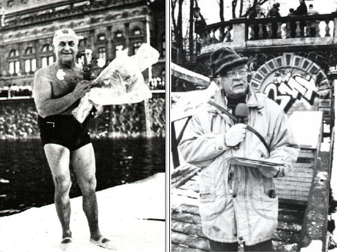 Diváků přibývalo, nikdo nevěděl, jak sváteční exhibice dopadne a na mostě se uzavíraly sázky, jestli se poplave nebo ne. Sekání ledu šlo zoufale pomalu, lámalo se z obou břehů a uprostřed se sešli na centimetr – ovšem až ve dvanáct. Ve stopětatřicetimetrovém koridoru, širokém deset metrů, se pak konečně začalo plavat.