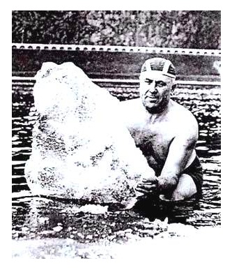 Bylo to na přelomu let 1948-49, kdy jsme na pozvání různých sokolských jednot jezdili po Čechách propagovat otužování. V té době se hrálo vodní pólo 2×4 minuty a pak ještě volné plavání. V brance nikdo nebyl, zaskočil vždy ten, kdo byl nejblíže. Spolehlivých otužilců na výdrž bylo však jenom sedm a tak se přibíral jako osmý vždy nějaký nováček s rizikem, že ten čas trochu přetáhne.