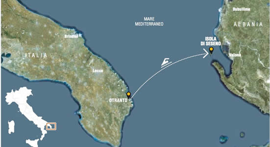 Možná bez takové medializace, ale za to úspěšně přeplaval vloni v září Massimo Voltolina Jadranské moře. Uplaval v rámci „Progetto Adriatico – Prima traversata a nuoto non stop del Mare Adriatico“ non-stop 85 kilometrů z Itálie do Albánie (na mapce) a stal se prvním člověkem, který to úspěšně dokázal. Zatím existovalo několik neúspěšných pokusů (např. Paul Pinto v roce 1986). Rovněž Voltolina měl slušnou průpravu, byť ne La Manche jako Medina nebo Moulla, ale byl italským reprezentantem v triatlonu, má Ironmana za 9:08 hodiny. Přesto plaval v Jadranu bez neoprenu (na rozdíl od Mediny). Vystartoval 4. září ve 14:26 z Punta Palascia u Otranta a doplaval na pobřeží Capo Linguetta v Albánii v 14:10 následujícího dne za 23:44 hod. Při plavbě ho doprovázeli spolu s trenérem i vědci z univerzit ve Foggii a Parmě v rámci výzkumu takového extrémního výkonu.