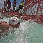 Závod se opět plaval na pouhým jeden a čtvrt kilometru dlouhém okruhu (ovšem stále podle pravidel, které připouští okruh minimálně o délce 1/10 tratě), takže to bylo hodně kroucení na mnoha bójích (60 otoček), což bylo náročné na rytmus, ale i tak od startu do cíle v něm dominovali oba vítězové – Němec Thomas Lurz a naše Jana Pechanová. Thomas Lurz ve finiši „jako vždy“ mazácky přehmátl druhého v pořadí – tentokráte Belgičana Ryckemana o 0,3 sekundy. Třetí byl další Němec Waschburger (snímek z finiše, zdroj Mexická federace). Janě se podařilo stejně těsně přehmátnout veteránku Angelu Maurer, se kterou se střídaly a přetahovaly o vedení po celý závod, a s větším odstupem za nimi doplavala další Němka Reichertová. Ženské plavaly v balíku do 8. kola, pak je sjeli o kolo chlapi a závodní pole se promíchalo a roztrhalo. Páté místo a životní výsledek si připsala Silva Rybářová, 9. místo vyplaval Honza Pošmourný, 13. Libor Smolka. Rosťa Vítek a Michael Mrůzek nedoplavali. Světová špička se nyní sejde 9.-10. června v portugalském Setubalu při druhém (a posledním) kole olympijské kvalifikace.
