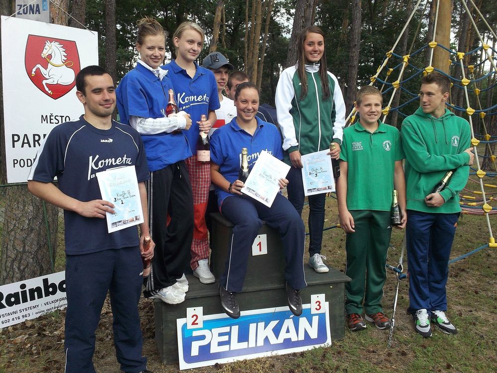 V sobotu se na start poprvé u nás plaval závod „Team Event“ na 3 km – závod tříčlenných hlídek – který je již součástí např. Mistrovství Evropy. Na start se postavilo celkem 11 týmů a premiérově stavilo triumf družstvo Komety Brno „A“, které dosáhlo času 39:14,5, o 2:04 zpět zůstalo „béčko“ Komety a třetí doplavala trojice Bohemians Praha (na fotce Jiřího Kuřiny všechny tři týmy při vyhlášení). V hlavním závodě na 5 km žen, který se plaval jako XXI. ročník „O pohár Lídy Jelínkové“, zvítězila po tuhém boji domácí Lenka Štěrbová před jihlavskou Barborou Pickovou a českobudějovickou Dominikou Hovorkovou. Soutěž mužů pak měla ještě dramatičtější průběh. V čele bojovala na třech okruzích hned celá sedmička plavců, která si to o vítězství rozdala v cílové rovince. Nakonec těsně zvítězil Ján Kútnik (Kometa) před svým oddílovým kolegou Karlem Balounem (+ 0,1) a Janem Mickou z USK Praha (+ 1,7). Ten pak pokračoval dál spolu ještě s Vítem Ingeduldem a Jakubem Tobiášem (oba Kometa), kteří se utkali v dodatečné nominaci na Mistrovství světa juniorů. Další dva okruhy se všichni hlídali a rozhodoval opět až finiš. Pomyslného „černého Petra“ pak zbyl na Kubu Tobiáše… V závodě žáků na 3 km triumfovali pardubičtí plavci, když všechna prvenství zůstala doma – starší žáky vyhrál Daniel Čaban (KVSPa), žákyně Michaela Štěrbová, mladší žáky Josef Knotek a žákyně Nela Zápotocká (všichni SCPA Pardubice).