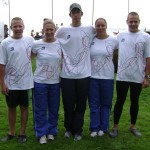 Ženy odstartovaly o necelých deset minut za muži. Ženy plavaly od počátku pohromadě a jen z konce balíku postupně odpadávaly slabší závodnice. Bohužel po druhém kole ze závodu odstoupila Bára Picková pro bolesti ramene a začala svádět druhý boj s nevolností po pobytu ve vlnách. Magda Okurková se dlouho držela v čelním balíku. Když plavalo v čele asi 15 závodnic, tak už přeci jen bylo tempo příliš vysoké a Magda si zvolila vlastní stopu a s přehledem si udržela svoji pozici a doplavala do cíle na pěkném 13. místě. Závod žen vyhrála Španělka Margarita Dominquez před mladou Němkou Lenou-Sophi Bermel a třetí skončila další Španělka Yurema Requena. (foto vyhlášení žen).