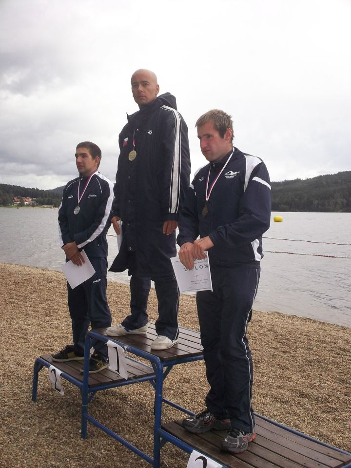 Při královském závodě na 20km ale nakonec svoji dlouholetou pozici obhájil před dalšími reprezentanty stříbrným Janem Pošmourným a bronzovým Karlem Balounem (všichni tři Kometa Brno – na druhém snímku Jiřího Kuřiny při vyhlášení ), kteří spolu se čtvrtým Matějem Kozubkem (Bohemians) odsunuli až na páté místo loňského stříbrného medailistu Michala Mrůzka (TJ Krnov). Rostislav Vítek tak získal svůj 13. titul na královské trati, celkově pak 19. na otevřené vodě, a navíc se mu vítězstvím na mistrovské dvacítce podařilo definitivně vyhrát Český pohár, který tak získal podeváté a odskočil znovu v počtu celkových vítězstvích pětinásobným vítězům Lídě Jelínkové, Michalovi Šandovi a Radce Nechmačové a navíc se ve svých 36 letech stal jeho absolutně nejstarším vítězem, kterým doposud byla Lenka Štěrbová st., která vyhrála v roce 2008 rovněž ve svých 36 letech, ovšem Rosťa je o 7 měsíců starší.