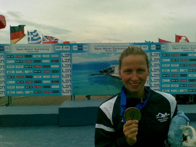 Jana Pechanová si dokonale spravila chuť a o pouhopouhé dvě desetiny vteřiny přehmátla bronzovou medaili v desetikilometrovém závodě (na snímku po vyhlášení s medailí)!! Zlato brala domácí olympijská medailistka Martina Grimaldi, stříbro dokázala vybojovat nesmrtelná Angela Maurer z Německa a Jana Pechanová o nejtěsnější dohmat bere bronz před další Italkou Alicí Franco.
