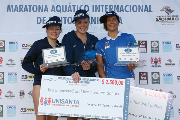 Brazilský závod, 7. Ročník International Marathon Swimming Santos – Unisanta, který se plave jako trofej Renaty Agondi, brazilské maratonkyně, kterou jsme potkávali na světových pohárech v 80. letech a která zemřela při svém pokusu o překonání Kanálu La Manche, byl pro domácí plavce rovněž kvalifikačním podnikem pro letošní mistrovství světa v Barceloně, kam se kvalifikovali první dva, tj. Allan do Carmo a Diogo Villarinho a Ana Marcela Cunha a Poliana Okimoto.