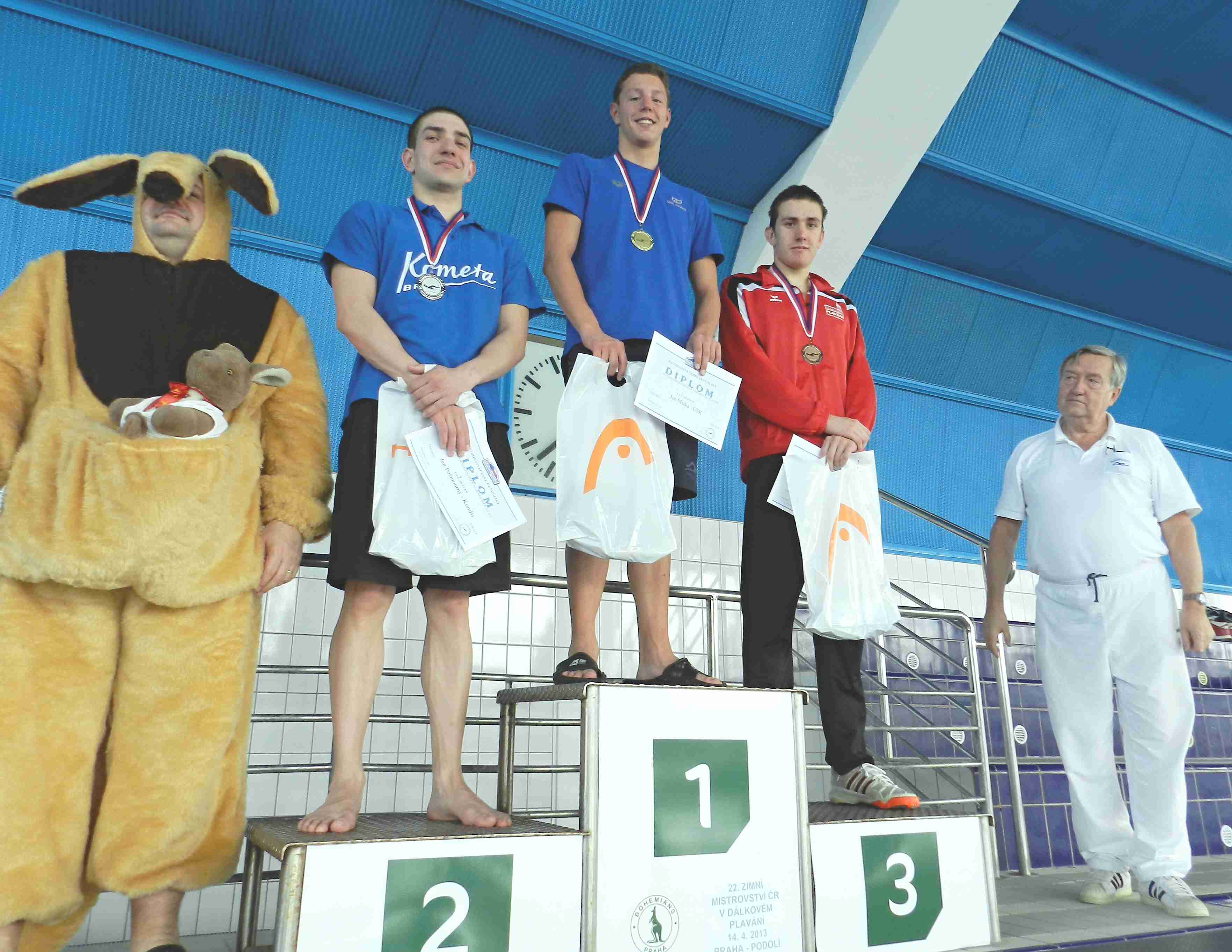 Pouhý týden po vylepšení českého rekordu na 1500VZ v Kyjevě se bronzovému medailistovi z loňského MSJ a českému rekordmanovi na 800, 1500 i 5000VZ Honzovi Mickovi (USK) podařilo při nedělním indoorovém dálkovém šampionátu obhájit mistrovský titul na pětikilometrové trati a navíc překonat vlastní rekord o 18 vteřin. Nový český rekord tak má hodnotu 53:38 min. a Honza vedle titulu a rekordu vybojoval i tradiční finanční odměnu, kterou sekce DZP za překonání seniorských a dorosteneckých rekordů vypisuje. Střibro vybojoval český reprezentant a matador bazénových pětek Honza Pošmourný (KomBr), který se na stupně vítězů bazénového mistrovství probojoval po sedmé v řadě! Nepřetržitě od šampionátu v Pardubicích v roce 2007. Navíc ve svém osobním maximu o více než půlminutý lepším a v pátém nejlepším čase české historie 54:22. Bronzovou medaili získal budějovický Vít Ingeduld, pro něhož je to již druhý bronz z této tratě, když první získal před 3 lety v Pardubících.
