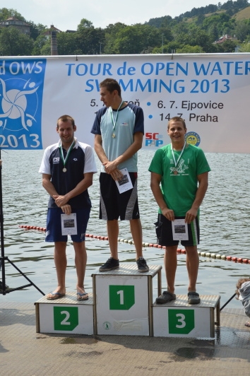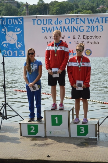 Hlavní závod na 5km opanovala, jako všechny předchozí etapy Tour, čtveřice reprezentantů. Ondra Baumrt, ale v chladně Vltavě dlouho nevydržel rychlé tempo Matěje Kozubka z Bohemians a tak do cíle letěl vláček jen tří plavců (první tři muži ve Vltavě na fotce č. 2). V souboji českobudějovických rodáků, nyní v modrých barvách brněnské Komety, zvítězil Vít Ingeduld před Karlem Balounem. Mezi ženami se do cíle podívala jako první Lenka Štěrbová (SCPAP), která chytře využila sil plaveckých domestiků Baumrta (SlCho) a Molinara (Boh). Druhá žena byla Barbora Štolková (SlPl) a třetí Pavlína Kubátová (SCPAP) (první tři ženy závodu na úvodní fotce). V součtu TdOWS2013 ale třetí místo mezi ženami udržela Petra Šťastná (KomBr).
