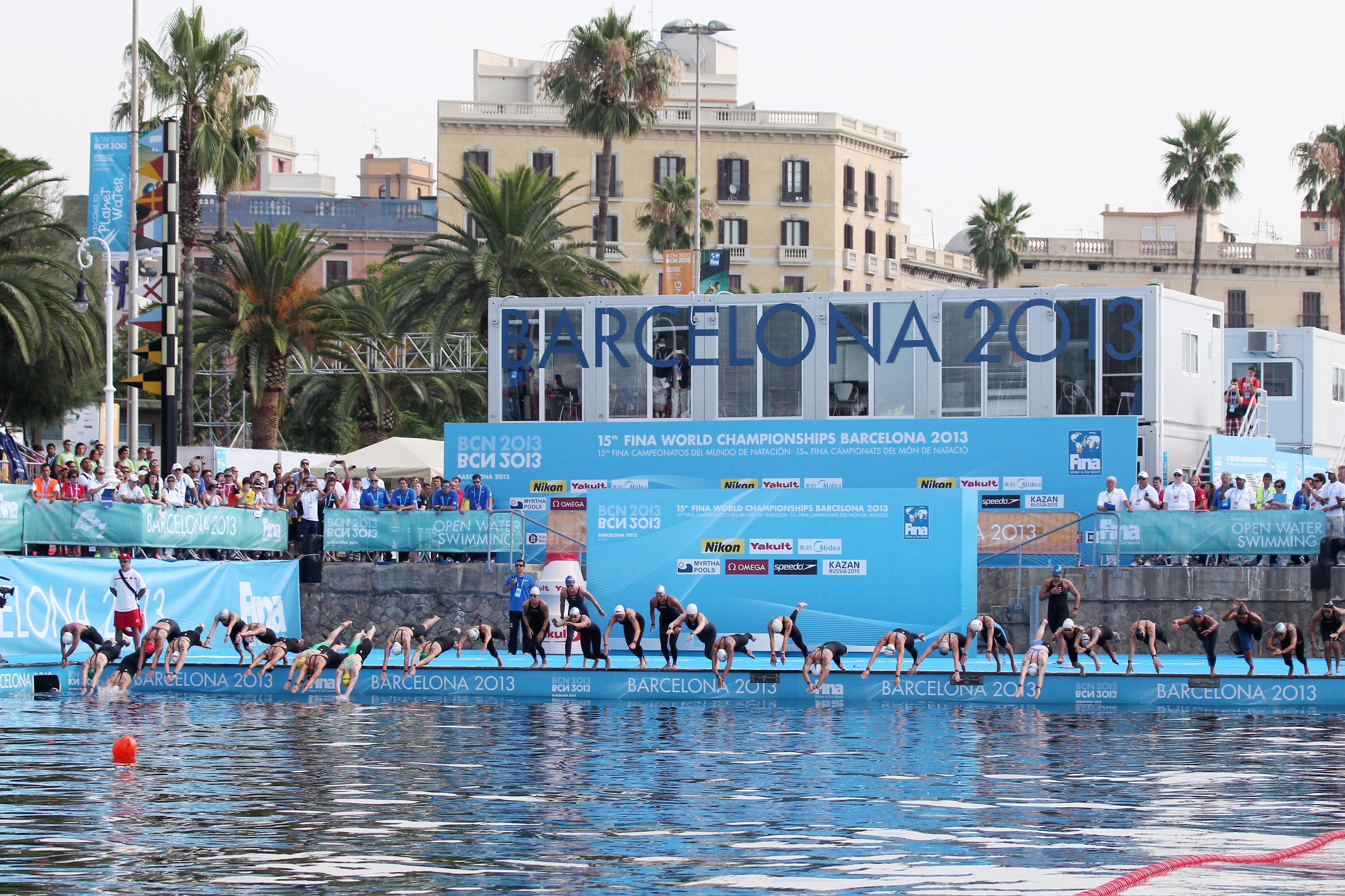 Mistryní světa se stala překvapivě Američanka Haley Anderson, sice stříbrná z loňských olympijských her na 10km, ale až 8. z amerického šampionátu na stejné trati, čímž se v Barceloně nevešla na start tratě, ze které má olympijskou medaili! Američanka vedla celé první kolo, zatímco druhé táhla zkušená Brazilka Poliana Okimoto, kterou však Anderson perfektně přehmátla a brala zlato o pouhé dvě desetiny vteřny. Bronz získala další Brazilka Ana Marcela Cunha. Složitou trať, o které jsme informovali již dříve, nezvádli hned dvě plakyně, které dostali červenou kartu za minutí bóje. Mezi muži pak svůj první titul šampióna získal 28-letý olymijský vítěz na 10km z Londýna Tunisan Ous Mellouli, jediný plavec v historii, který ma medaili z olympijských her v bazénu i v dálkovém plavání (1. v Pekingu na 1500VZ, 1. v Londýně na 10km a 3. tamtéž na 1500VZ), a plavec, který vybojoval v Barcelona svoji první medaili již na šampionátu před 10 lety! Mellouli tak sesadil z trůnu Mr. Open Water, 33-letého Němce Thomase Lurze, který nepřetržitě 7x za sebou získal na této trati titul světového šampióna a nyní se musel prvně na mistrovství světa na této trati sklonit před olympijským vítězem. A to se ještě mezi něj a Mellouliho vklínil teprve 20-letý Kanaďan Eric Hedlin. V pondělí a v úterý jsou na programu desítky. (foto fina.org a R. Vítek – vítězný Mellouli, start závodu žen a Kútňa v přípravě na start)
