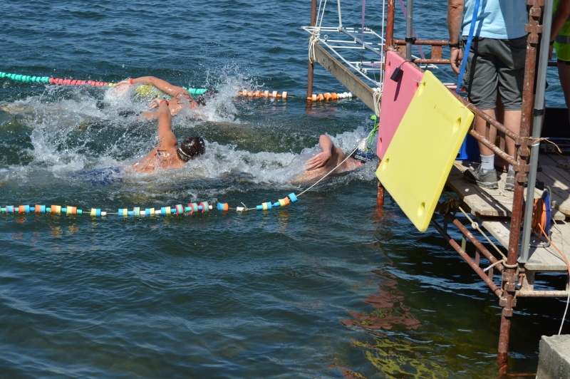 Sobotní program stejně jako v minulých letech zahájil nejdelším desetikilometrovým závodem. Tradičně početné startovní pole se brzy roztáhlo po celé nově vytýčené, přehlednější a bezpečnější trati, kterou zkušení pořadatelé ze Slezanu Opava téměř celou situovali podél břehu. Podle očekávání se na čele usadila trojice favoritů Baloun, Ingeduld a Kozubek. Sedmnáctiletý Matěj Kozubek si těžko mohl přát lepší závěr přípravy před odjezdem na evropský juniorský šampionát – aktivně odtáhl většinu závodu a svůj velký den zakončil vítězným finišem, když v posledních stovkách metrů odrazil závěrečný útok obou brněnských zástupců. V těsném souboji o druhé místo uspěl Karel Baloun a jako třetí dohmátl Vít Ingedul. Soutěž žen se vyvíjela podobně jako na Seči a na Vltavě. Lenka Štěrbová po ostrém úvodu a následné vzorné spolupráci s krnovským Michaelem Mruzkem ml. s přehledem vyplavala pro oddíl SC PAP plný počet bodů za první místo mezi ženami, ke kterému navíc přidala i čtvrtou příčku v absolutním pořadí. Pro stříbro si trochu překvapivě doplavala stále se lepšící Veronika Milerská z University Brno a pro bronz v barvách Komety startující domácí odchovankyně Adéla Solská.