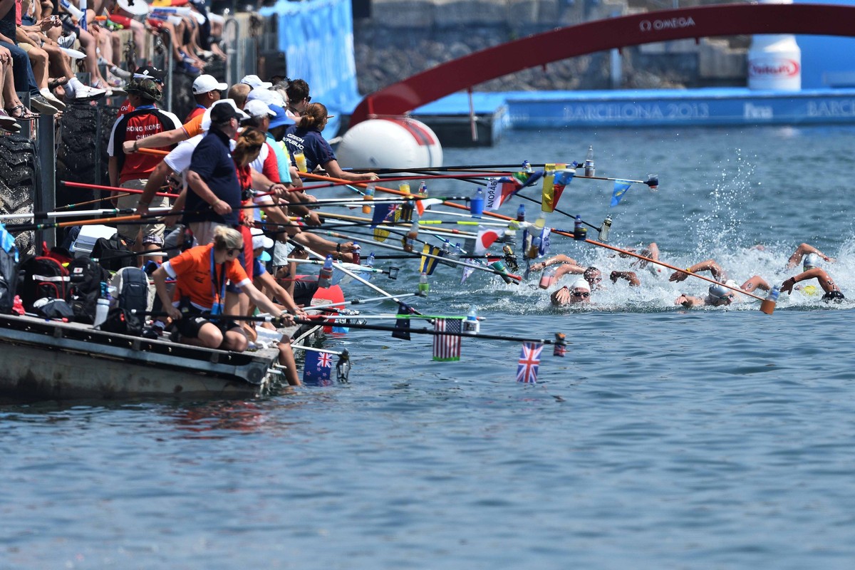 Naši dorazili na závodiště. V dnešním závodě na olympijské trati 10 kilometrů budou v našich barvách bojovat Bára Picková a Silvie Rybářová. Silva se na mistrovství světa představí na desítce potřetí, v Římě 2009 vybojovala 23. místo, v Šanghaji 2011 29. Bára je po Janě Pechanové, Yvettě Hlaváčové a Silvě teprve čtvrtou českou ženou, která si vybojovala právo startu na 10km na MS. Nejlepším českým výsledkem je stříbro Jany Pechanové z Dubaje 2004. Na posledním MS v Šanghaji doplavala Jana 7. a na MS startovala na desítce celkem 10x včetně vůbec první desítky na Havaji 2000 (do té doby se plavalo pouze 5 a 25km). Yvetta startovala na MS na desítce 4x, nejlépe zaplavala 16. místo (jednou nedoplavala a jednou ji diskvalifikovali). Uvidíme, jak naše holky dnes! Už nyní to v Barceloně peče, je 33°C, ale to má být dnes i u nás doma :-) (foto prvního občerstvovacího mola od Martina Sidorjáka)
