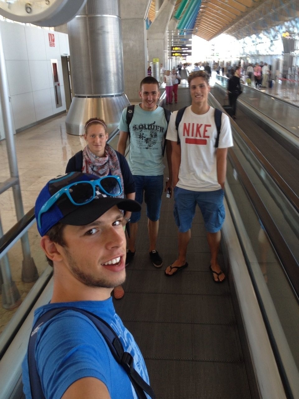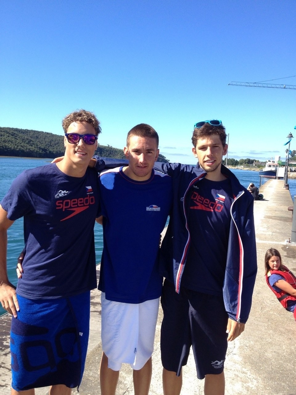 Ve čtvrtek večer dorazila do malebné španělské vesnice Navia skupina českých plavců ve složení: Bára Picková, Ondra Baumrt, Honza Kútnik a Víťa Ingeduld (na prvním snímku kluci v přístavu, na druhém celá výprava focená autospouští na letišti). Po vydatném spánku, který jsme si dopřáli zejména díky tomu, že zde nemáme trenéry, jsme včera absolvovali lehký trénink v bazénu a po polední siestě nás čekalo vyzkoušení závodního okruhu v řece Ria de Navia, kde jsme hlavně pilovali taktiku na zítřejší závod, jelikož bude takticky velmi náročný kvůli proudu řeky a protiproudu přílivu Atlantského oceánu.