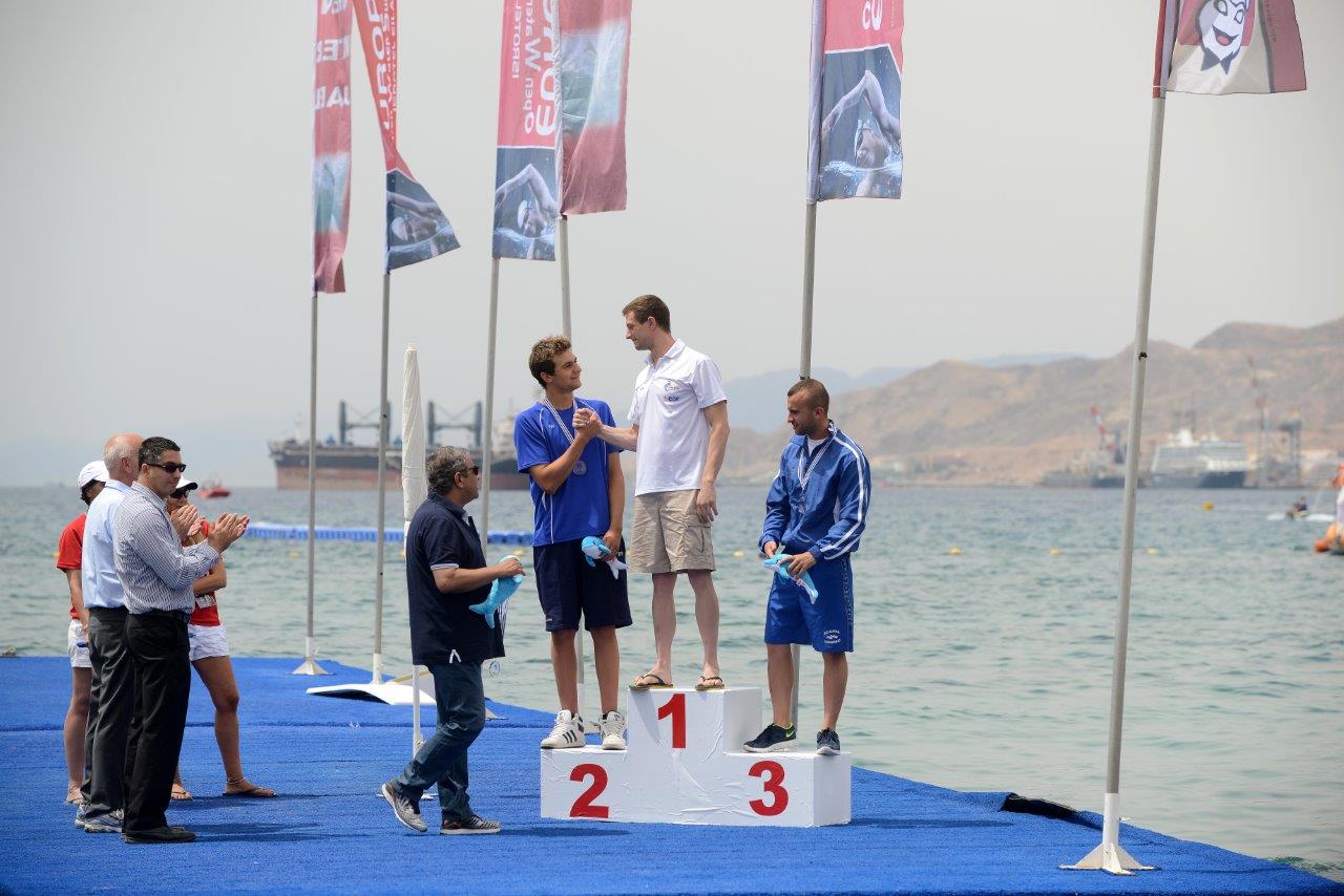 První kolo evropského poháru v izraelském Ejlatu, tradiční destinaci na plážích Rudého moře, otevřelo evropskou venkovní sezónu a přineslo nesmírně těžký a vyrovnáný závod. První čtyři muži v desetikilometrovém závodě se vešli do pouhých 28 setin vteřiny, když nakonec zvítězil Francouz Damien Cattin Vidal před reprezentačním kolegou Axelem Reymondem, bulharským Ventislavem Aydarskim (na druhém snímku z webu izraelské federace) a dalším Francouzem Romainem Beraudem. Velkou bitvou byla i desítka žen, když vyhrála Italka Aurora Ponsele před Francouzkou Aurelii Mullerovou a mladičkou Ruskou Anastasií Azarovovou (na prvním snímku). První v cíli sice byla olympijská vítězka Eva Risztov (Maďarsko), ale ta byla dodatečně diskvalifikována za domnělý faul v cílovém koridoru. Maďarský tým podal protest, protože si je jistý, že došlo k záměně startovních čísel, protože Eva Risztov plavala v cíli před ostatními, ale protest byl formálně zamítnut, protože nebyl podán řádně a včas (ano, stává se to i v lepších rodinách). Očkává se tedy asi ještě další diskuze, ale Risztov to vzala v klidu, když řekla, že na úvod sezóny byla nejrychlejší tak jako tak a s tím je ona sama spokojená. Evropský pohár pokračuje 21. června další desítkou na Balatonu, kde se již představí rovněž čeští reprezentanti. Kompletní výsledky a další fotky jsou zde.