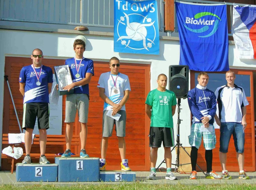 Ještě vyrovnanější boj o tři nominace na ME v Berlíně se předpokládal v závodě mužů. Už během prvních stovek metrů se vytvořila silná osmičlenná vedoucí skupina, kde se o tempo podle očekávání staral Vít Ingeduld, těsně sledovaný juniorem Matějem Kozubkem, zatímco největší favorit Jan Pošmourný si takticky hlídal své soupeře ze 3.-4. místa. Ještě před polovinou však zcela nečekaně, ale o to rezolutněji udeřil černý kůň závodu Ján Kútnik. Dvaadvacetiletý plavec Komety Brno se zatím téměř vždy spoléhal na svůj pověstný finiš, tentokrát však, vědom si své bazénové kvality, se svým soupeřům vzdaloval s takovou lehkostí, jako by to ani nebyli nejlepší dálkoví plavci republiky. Kútníkův únik vyburcoval Víta Ingedulda a Karla Balouna k vystupňování tempa, v jehož důsledku se silná skupina začala trhat. Někteří favorité, vida, že jejich šance na medaili a nominaci do Berlína se zhroutila, dokonce nenašli sílu pokračovat a závod vzdali. Za jasně triumfujícím Jánem Kútnikem si tak pro stříbro suverénně doplaval loňský vítěz Kroufkova memoriálu Karel Baloun (Kometa) a bronz a nominaci na ME si před dotírajícím čtvrtým Matějem Kozubkem (Bohemians) zajistil Vít Ingeduld (Plavání České Budějovice). Potlesk za statečný výkon si vysloužili i celkově pátý Jakub Tobiáš (Kometa) a šestý Libor Smolka z Krnova, ještě nedávno veleúspěšný český reprezentant. Mezi staršími dorostenci si za vítězným Matějem Kozubkem pro stříbro doplaval Jakub Černý z PK Vysoké Mýto – oba budou reprezentovat na MEJ v Záhřebu, třetí byl Michael Bláha ze Slavie Plzeň. Vyrovnaný závod mladších dorostenců rozhodl v cílové rovince domácí Daniel Čaban (SC PAP), druhý doplaval reprezentant pro MEJ Tomáš Kozubek (Bohemians) a třetí další pardubický závodník Josef Jurica.
