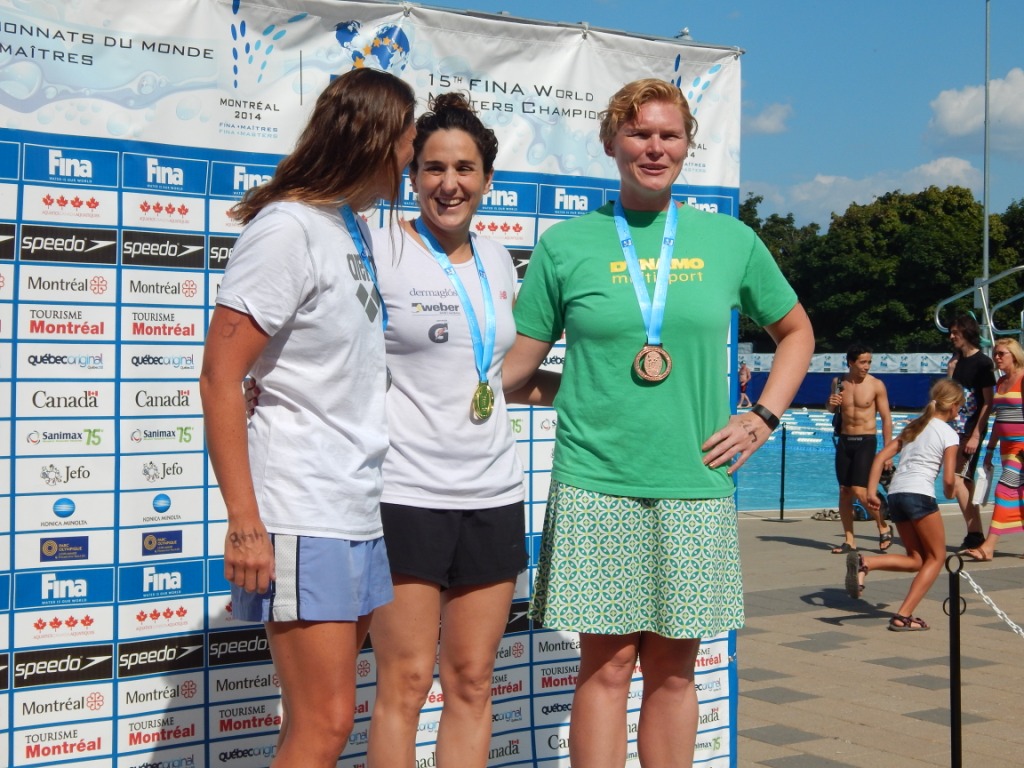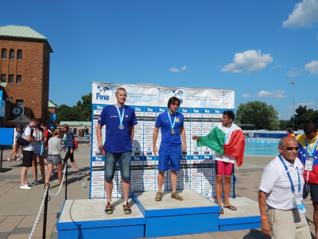 Libor Smolka, který se vloni po VC Krnova rozloučil s reprezentační kariérou se slovy, že dálkové plavání se nedá nikdy úplně opustit, potvrdil na mistrovství světa masters v kanadském Montrealu platnost svého tvrzení a po několika letošních úspěšných představení v domácích pohárových závodech dokázal v nebývalé konkurenci v Kanadě, zemi, kde ještě předloni válčil ve světových pohárech, vybojovat na trati 3 kilometry stříbrnou medaili v kategorii masters A!! Na snímku z vyhlašování se stříbrem na krku. Z ostatních čekých reprezentantů se nejlépe dařilo Michaelovi Mrůzkovi, který vybojoval 8. místo v kategorii 45-49 let. Petra Mrůzková doplavala v páté desítce a belhajícího se Ivana Smolku na start nepustilo nateklé koleno. Svého pobytu v Kanadě, kde se v minulých dvou týdnech honila na tratích přes 30 kilometrů v Grand Prix s naší Silvou Rybářovou, využila ke startu na mistrovství světa masters např. i Pilar Geijo (na druhém snímku) a jak je vidět, rovněž úspěšně.