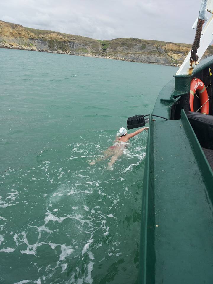 Ani on ale české léto na Kanálu ještě neodvzonil, již v polovině července v brzkém “tajdu” totiž na svůj pokus v Doveru čekala ve Francii působící Zdenka Krčálová, trochu v utajení, když není počítán autor článku, která se ale nedočkala a všechny české výpravy viděly na děsivém počasí v Doveru, když tam 19. července dorazily před svými pokusy, proč, a musela se vrátit domů do Francie s tím, že se do Anglie vrátí v dalším, pro ni náhradním “tajdu”. Ten ale byl více než přeplněn Čechy, Američanem a Britkami. Proto nakonec nejdříve odcestovala do Walesu na Mistrovství Evropy v záchranném sportu, kde počátkem srpna vybojovala 8. místo v závodě board rescue. Nakonec až právě ve Walesu dostala zprávu o možném včerejším termínu a narychlo si odsud zajistila v Doveru ubytování, doprovod a s osvědčeným Regem Brickellem, jenž spolu se svým bratrem převádí plavce přes La Manche skoro 40 let a před ním dalších 20 let převáděl jejich otec, a on sám má na kontě 1/10 všech úspěšných plavců a dokonce 1/3 všech násobných přeplaveb, včetně té poslední unikátní trojnásobné přeplavby Chloë McCardelové, úspěšně svůj opakovaně odložený pokus dokončila. Klobouk dolů! Dokázala skutečné odhodlání a nezdolnost, když se ji termín posouval průběžně celý měsíc! Na fotce je momentka z jejího finiše, který byl dle Zdenky nekonečný a téměř pln beznaděje v místech „tajdu“ u francouzského břehu, který se nepřibližoval a nepřibližoval… Zdenka měla alespoň malinkou výhodu, jakous takous představu, do čeho jde, protože byla členkou ženské brněnské štafety, která si na La Manchi zašpásovala v roce 2011. Jinak totiž, ať dopředu studujete La Manche, jak studujete, nakonec stejně na to moře a počasí tam koukáta zaraženě.