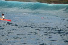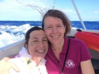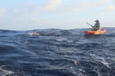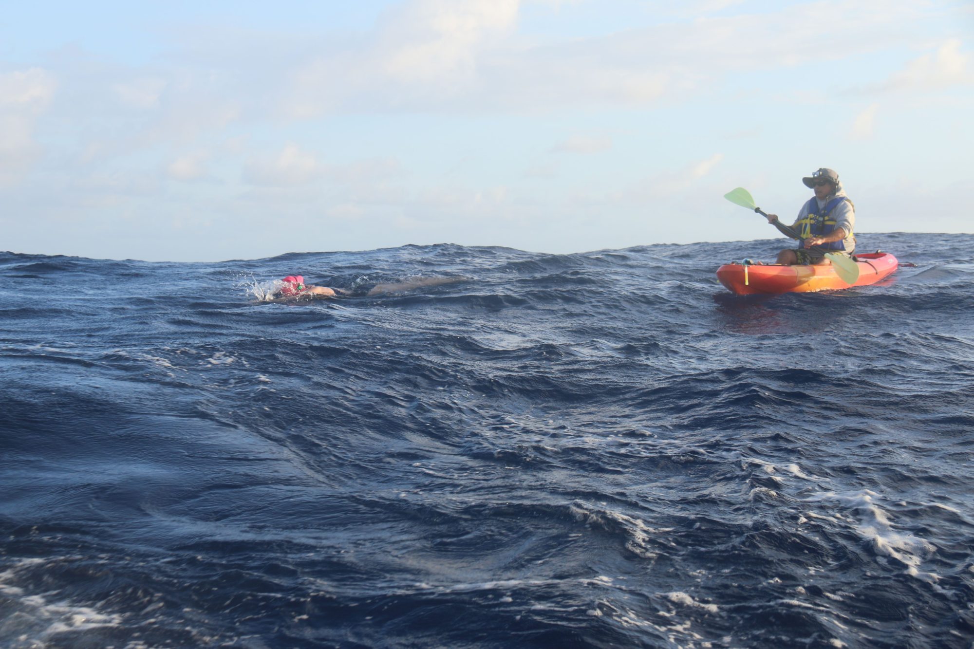 Děkuji také za bezplatné poskytnutí přístrojů proti žralokům – firmě e-shark force, která sídlí na Havaji. Žraloci byli před přeplavbou jedním z velikých témat, obzvlášť když se objevili u nedávných přeplaveb, takže jsem byla vděčná za ochranu a mír mysli, které mi použití těchto přístrojů připevněných k doprovodnému kajaku přineslo. Žádného žraloka jsme neviděli, zato jsme viděli velryby (keporkaky) a delfíny. Sečteno a podtrženo – byl to krásný a jedinečný zážitek, ale jsem ráda (alespoň v tuto chvíli), že už mám přeplaváno. Plavat v mocném Tichém oceánu, který má obrovskou sílu, je nevyzpytatelný svými proudy, větrem a vlnami, to rozhodně nebyla úplná havaj :-) Nezapomenutelný zážitek ale určitě.“