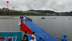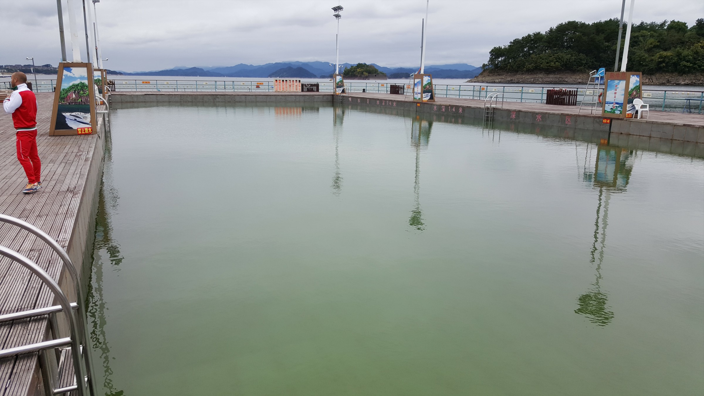 Čína přivítala naší výpravu nevlídným počasím – zataženo, déšť, mlžný opar a podobné provázely prakticky celý čínský pobyt. Závod byl naplánován na neděli 15. října do jezera Qiandao, tréninky do té doby probíhaly na 50 metrovém bazénu, což ale v čínském podání znamenalo bazén vestavěný přímo do téhož jezera, ve kterém nebyly nijak odděleny jednotlivé dráhy, což, při účasti většího počtu výprav, dělalo z tréninku místy i boj o přežití, australský plavec pohybující se následně po hotelu s ledovým obkladem na nose toho budiž nesporným důkazem.
