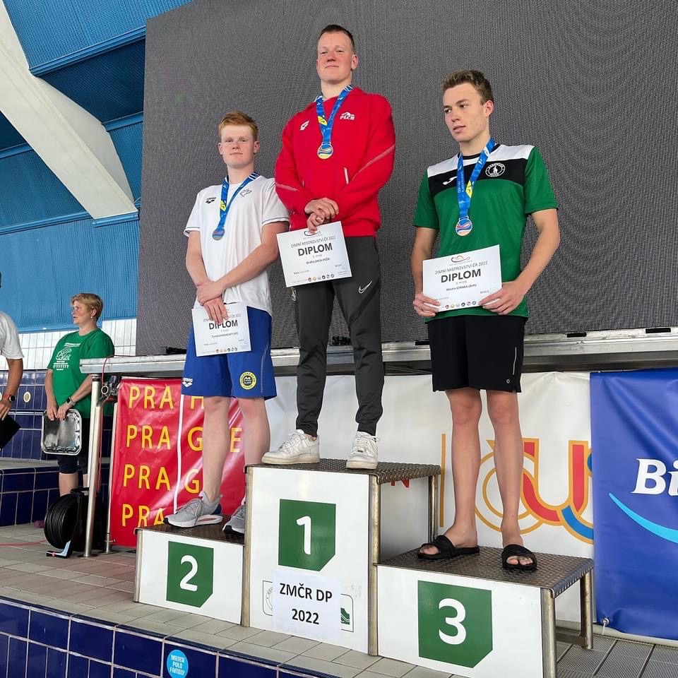 Naopak premiérový indoorový dálkoplavecký titul vybojoval Ondřej Zach (Plavaní Čes. Budějovice), samozřejmě s důležitou poznámkou, že z loňska drží absolutní titul naopak na nejdelší venkovní disciplíně na 20 km z Račic a v bazénu dokázal již vybojovat právě v Podolí tituly v kategorii mladšího (2015) i staršího dorostu o dva roky a seniorský bronz v roce 2018, a ještě s důležitější poznámkou, že zaplavaným časem 54:19,4 min. se zařadil na 7. místo historických českých tabulek, kde je třetím mužem za časy Jana Micky a Květoslava Svobody. O rychlosti závodu svědčí i desátý čas české historie stříbrného věkem ještě staršího dorostence Tomáše Chocholatého (Slávie Plzeň). Bronz získal Martin Straka (Bohemians). (všichni tři na fotce SlPl)