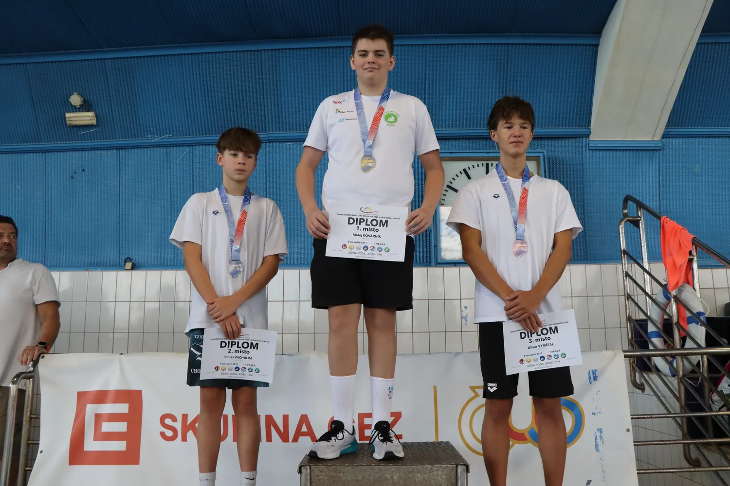 Hned poté přišlo na řadu pokračování rekordního příběhu. Kopřivnický Jiří Zátopek loni zaplaval český rekord mezi 14-letými kadety, a tentokrát mířil kromě nového rekordu i pro limit na Mistrovství Evropy juniorů. A povedlo se obojí. Na čerstvý výkon Tobiase Studenta měl po polovině závodu už minutový náskok a i přesto, že o několik vteřin v závěru přišel, tak časem 58:01.7 přepsal rekordní tabulky podruhé a doplaval si pro titul v ročníku 2010. Tobias Student bral stříbro a Šimon Studnička (oba Slávie Chomutov) bronz. Mezi ročníkem 2011 si medaile odvezli Matěj Kovárník (PK Kuřim), Tomáš Vachulka a Oliver Vymětal (oba Slávie Chomutov).